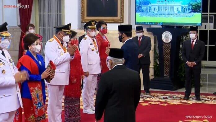 Pelantikan Gubernur Sulut Olly Dondokambey dan Wakil Gubernur Sulut Steven Kandouw sebagai pasangan Gubernur dan Wagub terpilih Provinsi Sulawesi Utara (Sulut) berlangsung di Istana Negara Jakarta, Senin (15/2/2021) oleh Presiden Joko Widodo bersamaan dengan Pelantikan Gubernur dan Wagub Kalimantan Utara.