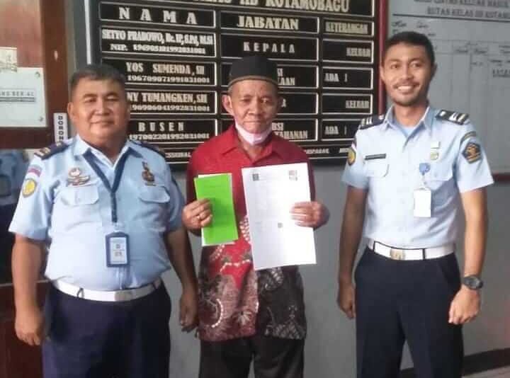 “Tepat hari ini, Rutan Kotamobagu kembali melaksanakan Pembebasan bersyarat yakni satu orang warga Binaan di Rutan mendapatkan Program Pembebasan Bersyarat setelah menjalani 2/3 dari masa pidana yang dijatuhkan pengadilan, dan ditambah dengan syarat-syarat lainnya sesuai dengan aturan yang berlaku,” terangnya.