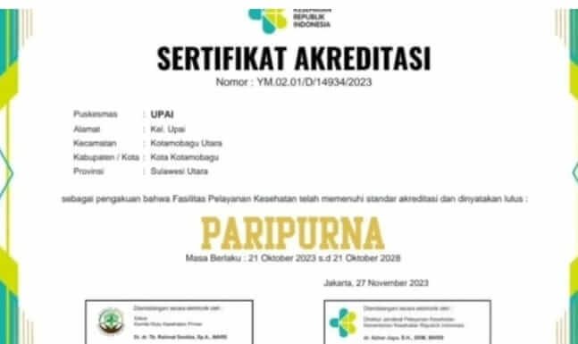 Di ketahui, akreditasi paripurna ini didapat berdasarkan penilaian menyeluruh berbagai aspek, antaralain, manajemen, pelayanan medis, sarana dan prasarana, serta kualitas pelayanan keseluruhan. Puskesmas Upai berhasil mencapai standar tertinggi, menunjukkan upaya maksimal dalam memenuhi standar kualitas pelayanan kesehatan yang ditetapkan.