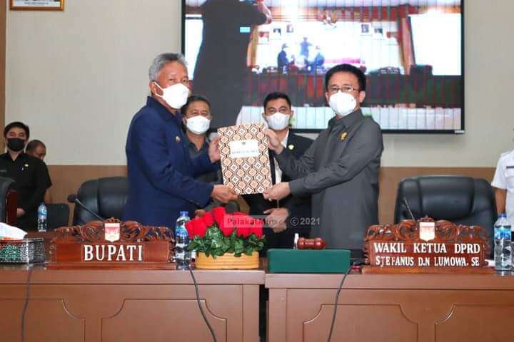 KOMUNIKASULUT.COM – Bupati Franky Donny Wongkar, SH. dan Wakil Bupati Pdt. Petra Yani Rembang, menghadiri Rapat Paripurna Dewan Perwakilan Rakyat Daerah (DPRD) Kabupaten Minahasa Selatan (Minsel), Rabu (22/09/2021).