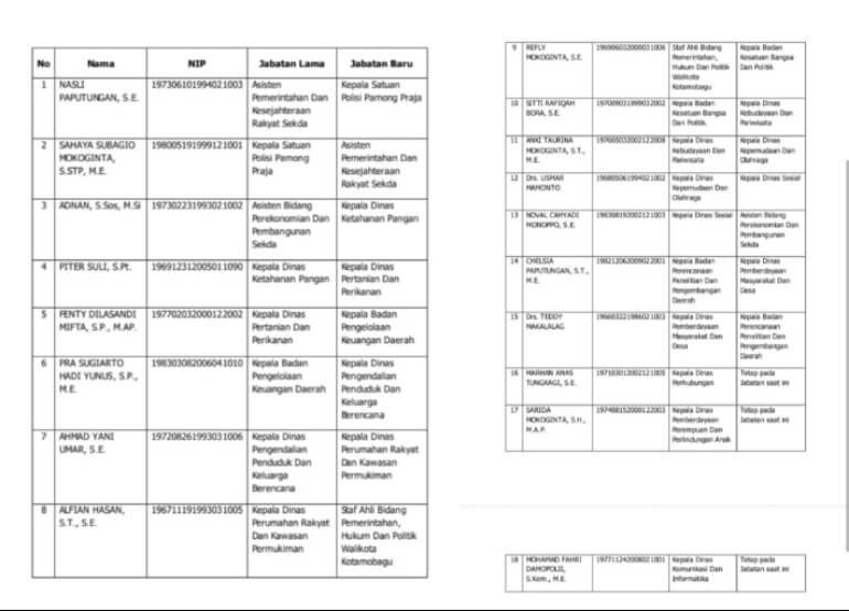 Berikut daftar nama JPTP Pemkot Kotamobagu: