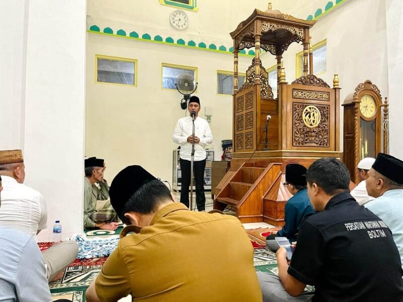 khaki-bee-173050.hostingersite.com – Bupati Bolaang Mongondow Timur, Sam Sachrul Mamonto melaksanakan ibadah Shalat Isya, Tarawih, dan Witir di Masjid Nurjana Tutuyan, Senin (25/4/2022).
