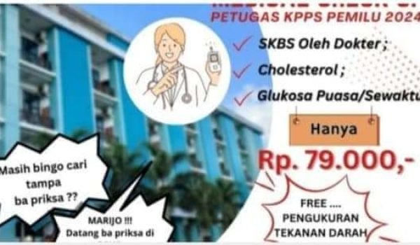 Di ketahui, hal ini dengan adanya kemudahan dalam pengurusan pemeriksaan kesehatan atau Medical Check Up sebagai syarat bagi calon anggota Kelompok Penyelenggara Pemungutan Suara (KPPS) pada Pemilu 2024 yang akan datang.