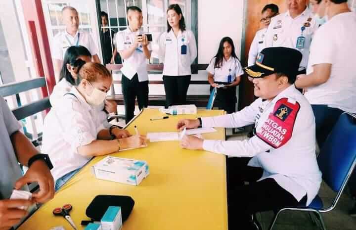 Dalam kegiatan ini Karutan Kotamobagu Kanwil Kemenkumham Sulut turut memeriksakan kesehatannya diikuti oleh pegawai dan WBP Rutan Kotamobagu.