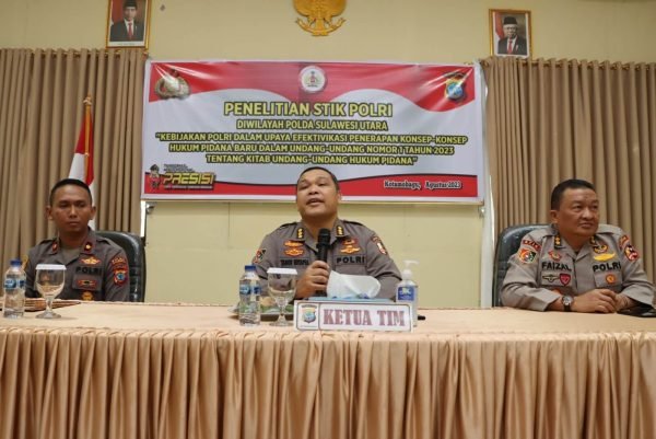 Setelah disambut oleh Kapolres Kotamobagu yang diwakili oleh Wakapolres Kompol Arie Prakoso, SIK menjelaskan, tujuan utama penelitian ini adalah mendapatkan masukan terkait Undang-Undang nomor 1 tahun 2023 tentang Hukum Pidana yang baru sehingga nantinya dapat dijadikan bahan koreksi yang lebih baik.