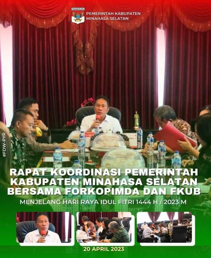 khaki-bee-173050.hostingersite.com – Rapat Koordinasi FORKOPIMDA bersama FKUB, dalam rangka menghadapi rangkaian kegiatan Idul Fitri 2023/1444 Hijriah di Kabupaten Minahasa Selatan, yang di Gelar di Ruang Rapat Kantor Bupati Minahasa Selatan. Kamis (20/4/2023).