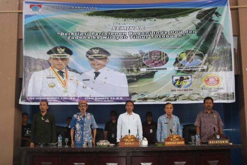 Kegiatan Seminar yang mengusung tema Deskripsi Perjalanan Bogani Inde Dou dan Tadohe ke Wilayah Timur Totabuan ini digagas oleh Pemerintah Kabupaten Boltim bersama Komite Nasional Pemuda Indonesia (KNPI) dan Karang Taruna Boltim.