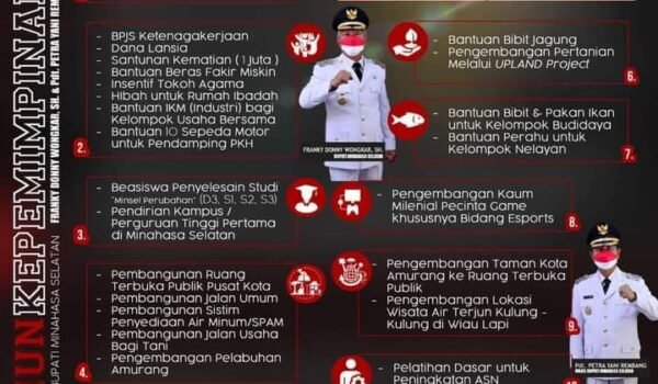 FDW-PYR telah memberikan yang terbaik bagi masyarakat Minsel, Meski ditengah keterbatasan anggaran yang disebabkan oleh wabah Covid19, namun keseriusan untuk merealisasikan Visi – Misi tetap konsisten dilakukan Bupati Franky Donny Wongkar, SH. dan Wakil Bupati Pdt. Petra Yani Rembang.