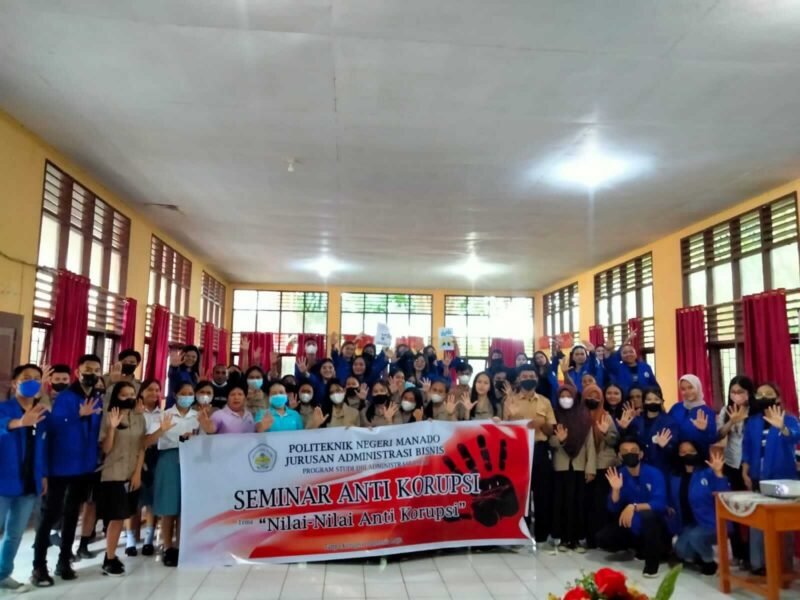 khaki-bee-173050.hostingersite.com – Mahasiswa semester 6 Jurusan Administrasi Bisnis, Program Studi (Prodi) DIII Administrasi Bisnis (AB), Politeknik Negeri Manado (Polimdo) suksesi Project Based Learning (PBL) dengan menggelar seminar Anti Korupsi, yang bertemakan ‘nilai-nilai anti korupsi.’ di Aula SMK N 5 Manado, Jumat (20/5/2022).