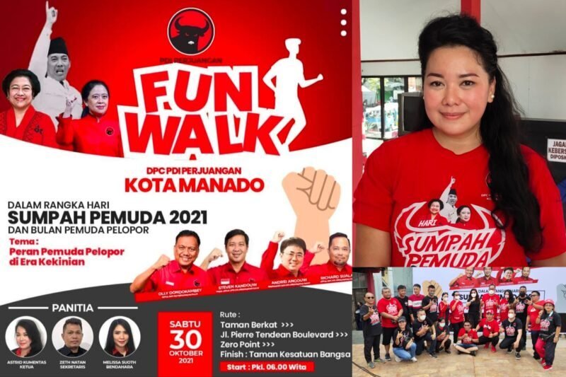 KOMUNIKASULUT.COM – Dewan Pimpinan Cabang (DPC) Partai Demokrasi Indonesia Perjuangan (PDIP) Manado sukses menggelar kegiatan Fun Walk pada Sabtu (30/10/2021).