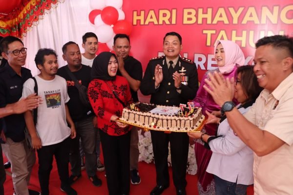 Kapolres Kotamobagu AKBP Dasveri Abdi SIK didampingi Oleh ketua bhyangkari cabang turut merayakan momen spesial dengan pemotongan tumpeng oleh personel tertua dan termuda, dan menjadi simbol kebersamaan serta penghormatan terhadap tradisi dan nilai-nilai kebhayangkaraan.