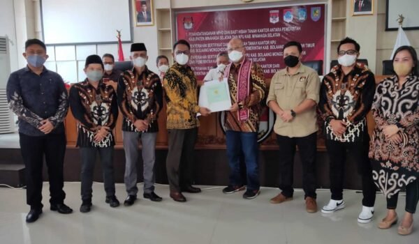 Pemkab Boltim Serahkan Sertifikat dan Surat Hibah Tanah ke KPU RI