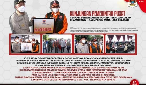 BNPB Respon Cepat Permohonan Bantuan Bencana Abrasi Pemkab Minsel