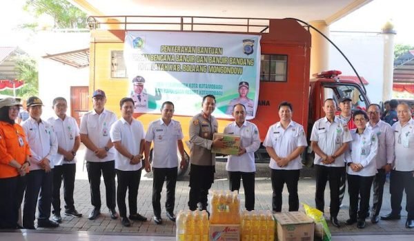 Pemkot-Polres Kotamobagu Bersinergi Serahkan Bantuan Bencana Banjir Bolmong