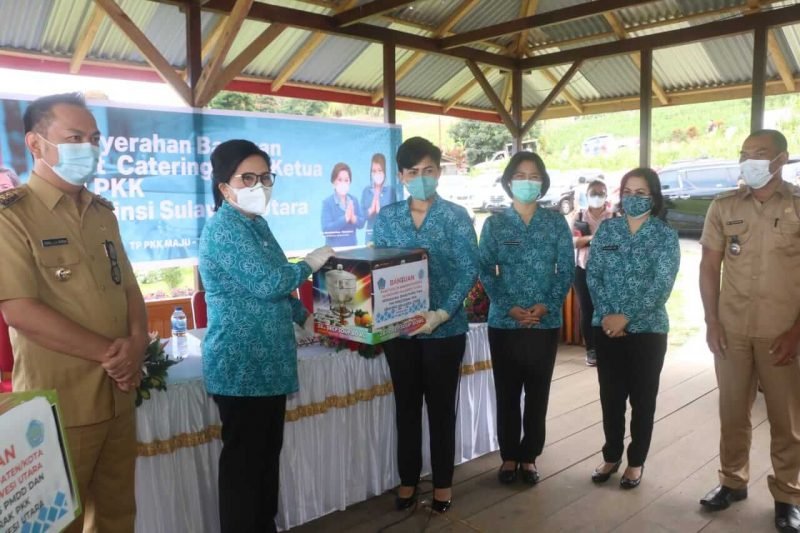 Ketua TP-PKK Provinsi Sulawesi Utara Ir. Rita Dondokambey-Tamuntuan menyerahkan langsung bantuan alat catering kepada 10 kelurahan yang diterima langsung oleh Ketua TP-PKK masing-masing kelurahan dan didampingi oleh Lurah.