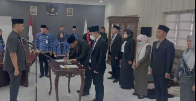 Pengambilan sumpah dalam rolling yang dilaksanakan di ruang kerja WaliKota Kotamobagu Ir Hj Tatong Bara ini di pimpin langsung, sekretaris Daerah (Sekda) Kotamobagu Sofyan Mokoginta SH serta disaksikan para pejabat eselon II Pemkot Kotamobagu.