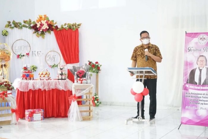 Sedangkan Sualang selaku Wakil Walikota Manado, mengikuti ibadah hari ulang tahun ke-25 sekaligus pelantikan dan serah terima pelayanan Ketua Badan Pekerja Majelis Jemaat (BPMJ), Pdt. Jeiny Watulingas, S.Th, kepada Pdt. Ivonneke Yunisye Umboh Gogani, S.Th, di GMIM Betlehem Teling Atas, Kecamatan Wanea, Minggu (16/5/2021).