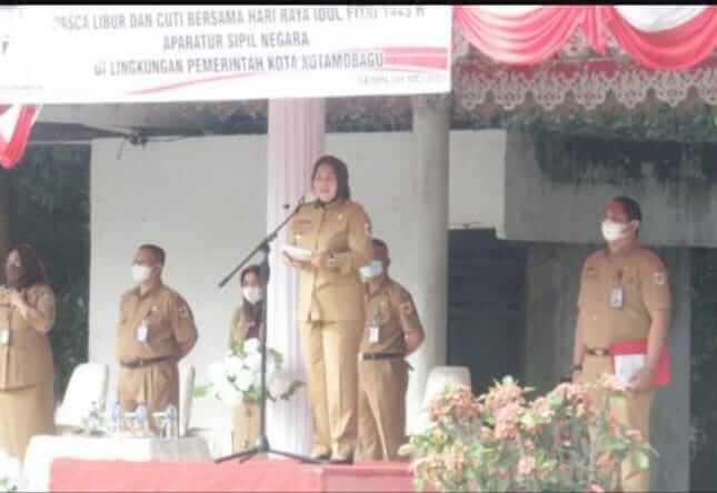 Hal ini, disampaikan WaliKota Kotamobagu Ir Hj Tatong Bara saat memimpin Apel Kerja Perdana Aparatur Sipil Negara usai Libur dan Cuti Bersama dalam rangka Hari Raya Idul 1443 Hijriah yang di laksanakan tepatnya di lapangan Kotamobagu.