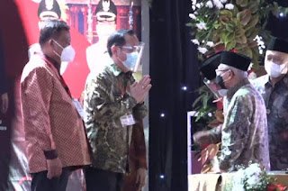KOMUNIKASULUT.COM – Wali Kota Tomohon Caroll Joram Azarias Senduk, S.H bersama Wakil Wali Kota Tomohon Wenny Lumentut, S.E. (CSWL) menghadiri kegiatan Konferensi Nasional (Konas) FKUB Ke-VI Se-Indonesia dan Pekan Kerukunan Internasional 2021 yang dilaksanakan di Convention Hall Hotel Sutan Raja di Minahasa Utara yang dibuka oleh Wakil Presiden RI Prof. Dr. (H.C.) K.H. Ma’ruf Amin, Jumat (19/11/2021), bertempat di Hotel Sutan Raja, Minahasa Utara (Minut).