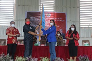 “Kepada para peserta KKN, laksanakanlah tugas dengan baik, karena ketika pekerjaaan dilakukan dengan tekun dan fokus, pastinya akan menghasilkan karya yang baik, dan yang lebih penting lagi dapat terus mensosialisasikan penerapan protokol kesehatan dalam lingkungan masyarakat sebagai upaya pengendalian penyebaran covid-19,” pesan Lumentut, yang pada kesempatan itu ikut menyerahkan bendera pataka kepada koodinator KKN.